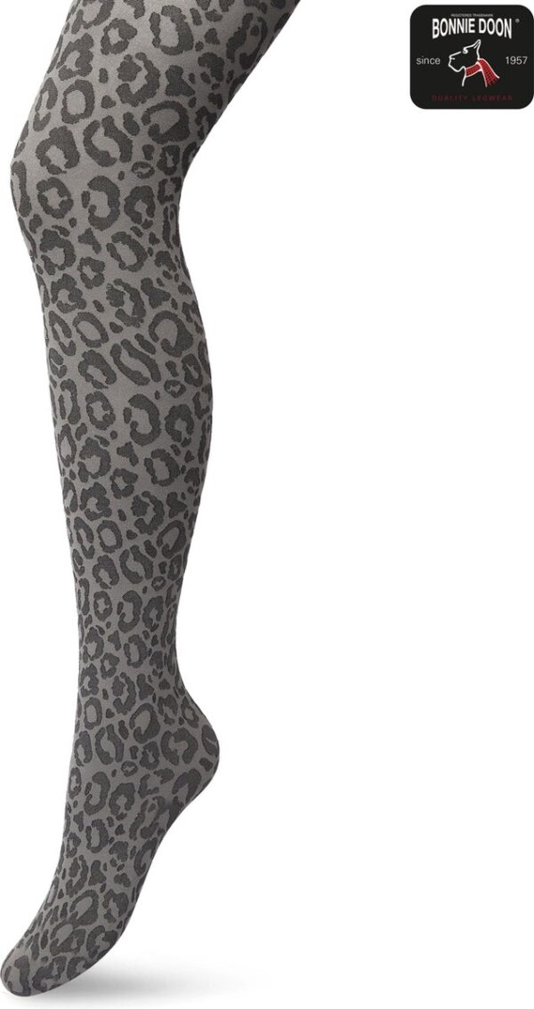 Bonnie Doon Dames Panterprint Panty 100 Denier Grijs maat S/M – Chique Panty – Leopard Dessin – Brede Boord – Comfort – Panter Print – Jaguar – Dieren Print – Jaguar Tights – Feestelijk – Grey – BP211904.235 (8717394456086)