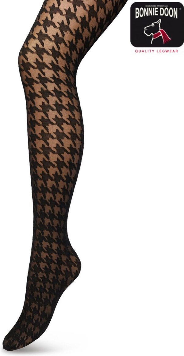 Bonnie Doon Houndstooth Panty 50 Denier Zwart Dames maat L/XL – Pied de Poule – Print – Gladde Naden – Maximaal Draagcomfort – Houndstooth Tights – Chique Panty – Feestelijk – Black – BP221903.101 (8717394471850)