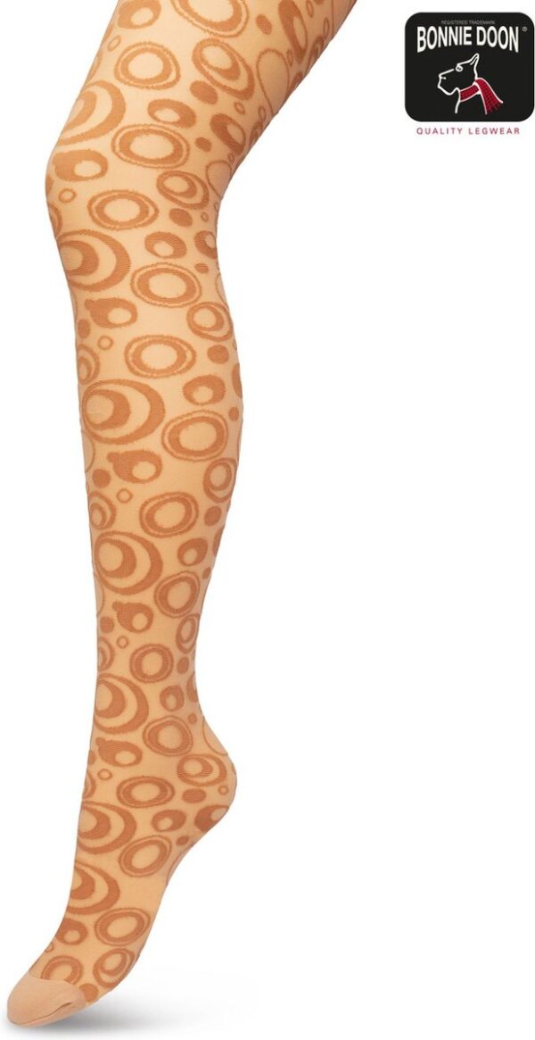 Bonnie Doon Panty 50 Denier Bruin Dames maat L/XL – Rondjes en stipjes – Print – Cirkels – Dot Panty – Gladde Naden – Maximaal Draagcomfort – Circkles and Dots Tights – Chique Panty – Feestelijk – Macaroon – BP221904.275 (8717394472031)