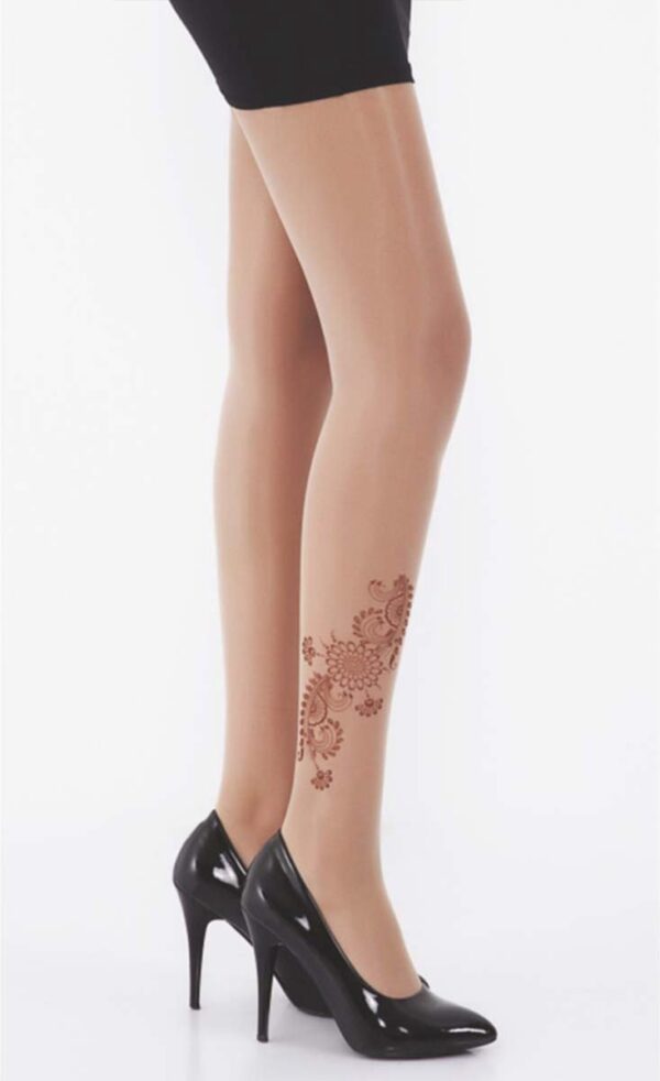 Daymod Fantasie Ayda Henna Patroon – Luxe Dames Panty – Transparant – 15 Denier – NATURAL – Maat M (8699094149300)