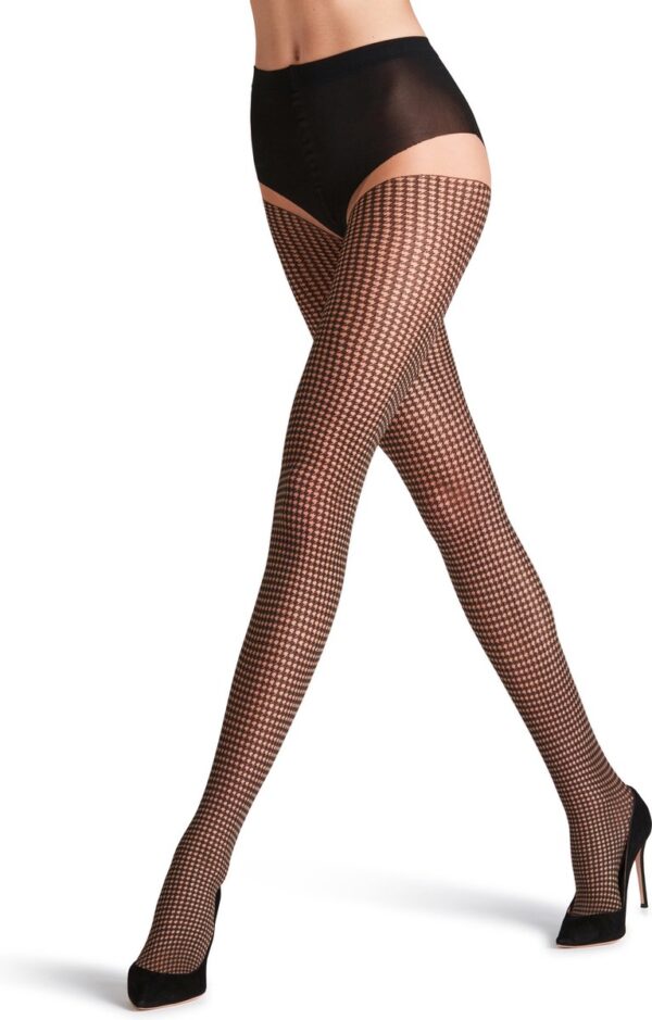 FALKE Houndstooth gedessineerd materiaal transparant 15 DEN panty dames huidskleur – maat M-L (4031309356006)
