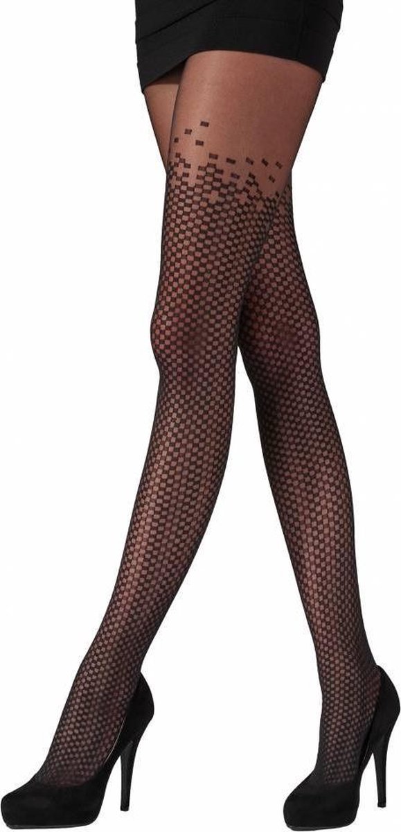 Zwarte panty met over de knie patroon van Pixellated. Deze trendy panty is er in 1 maat (36 Tot 42)