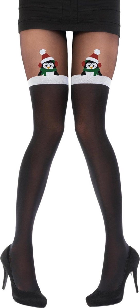 Vrolijke Kerst Hold-Up Panty van Pretty Polly is versierd met een feestelijke pinguïn boven elke knie. Perfect voor elke outfit stoer of feestelijk! Deze leuke panty is er in 1 maat (36 tot 42)