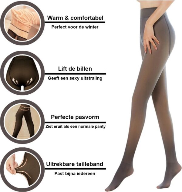 Heb je ook genoeg van die koude benen als je in de winter naar buiten wilt en vind je een maillot niet mooi? Je bent niet de enige. Andere vrouwen kiezen daarom voor een fleece panty van Sorprese. De fleece gevoerde panty heeft een uitstraling van een normale panty met 30-denier waardoor jij met warme benen de deur uit stapt. Fleece panty van Sorprese voor warme benen tijdens de koude dagen Met de fleece panty van Sorprese draag jij je favoriete outfit, ook wanneer het koud buiten is. De fleece panty lijkt op een panty van 30 denier maar is warm gevoerd waardoor jij het niet meer koud hebt en het net lijkt alsof je een echte panty draagt. Ideaal voor wanneer jij net dat ene jurkje aan wilt. Draag eenmaal de warme fleece gevoerde panty en je wilt niet meer anders. Buitenkant: 65% Polyamide & 35% Elastaan Binnenkant: 100% Polyester Waarom steeds meer mensen voor een fleece panty kiezen: Warme benen in de kou - Doordat de panty fleece gevoerd is heb jij het lekker warm. De panty is geschikt tot tempraturen tot het vriespunt waardoor jij met een warm hart gerust de deur uit kan stappen. Een panty die altijd past - De fleece panty is verkrijgbaar in drie verschillende maten. Een maat S-M, een maat L-XL en maat XXL, hierdoor is er voor iedereen een geschikte maat beschikbaar. Wij adviseren om de panty zoals gebruikelijk een maat groter te nemen. Comfortabel - Omdat de panty fleece gevoerd is zit hij erg comfortabel, hierdoor is het een genot om de panty aan te trekken. Jij zit er lekker warm bij. Herbruikbaar - omdat de fleece panty wasbaar is hoef jij hem niet meteen weg te gooien. Was hem op handwas, zo kun je de panty blijven gebruiken. Dit scheelt het kopen van nieuwe panty's maar is ook nog eens duurzaam. Natuurlijke look - De fleece panty schijnt lichaamskleur door waardoor het net lijkt alsof je een panty van 30 denier draagt. Zo kom jij netjes over op de gelegenheid waar je moet zijn. Een warme panty wanneer het buiten koud is Een warme panty aantrekken wanneer het koud is. Dat wil je. De fleece panty van Sorprese zorgt daarvoor. Jij kan met een gerust (warm) hart de deur uit wanneer het koud is. Is de panty, om wat voor reden dan ook, tóch niet geschikt voor je? Dan is retourneren helemaal gratis. Let op, voor dit product gelden aanvullende retourvoorwaarden. Indien de panty duidelijke gebruikssporen bevat, wordt deze niet geretourneerd. Koop vandaag en je kan morgen al je favoriete jurkje aan! (EAN: 8721025807345)
